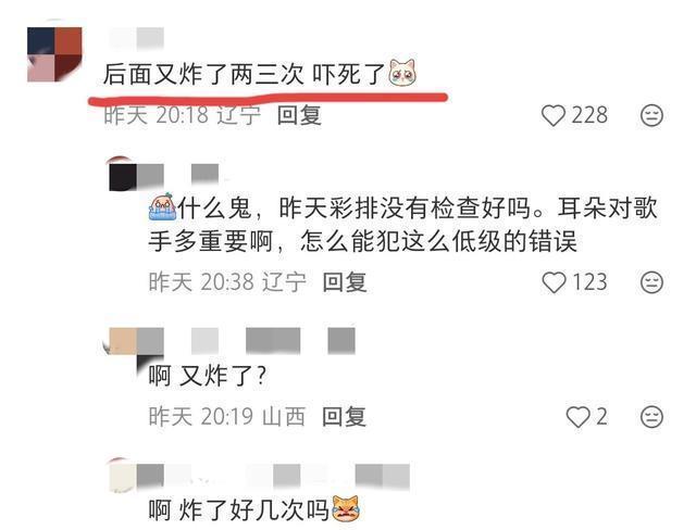 然而,让摩饭们担心的事又发生了,仅过去一会儿,耳麦再次炸响。连续几次这样,有些网友已经开始坐不住了。 “我天,这算事故了吧?耳膜很脆弱的……” “什么鬼,昨天彩排没有检查好吗。耳朵对歌手多重要啊,怎么能犯这么低级的错误?”